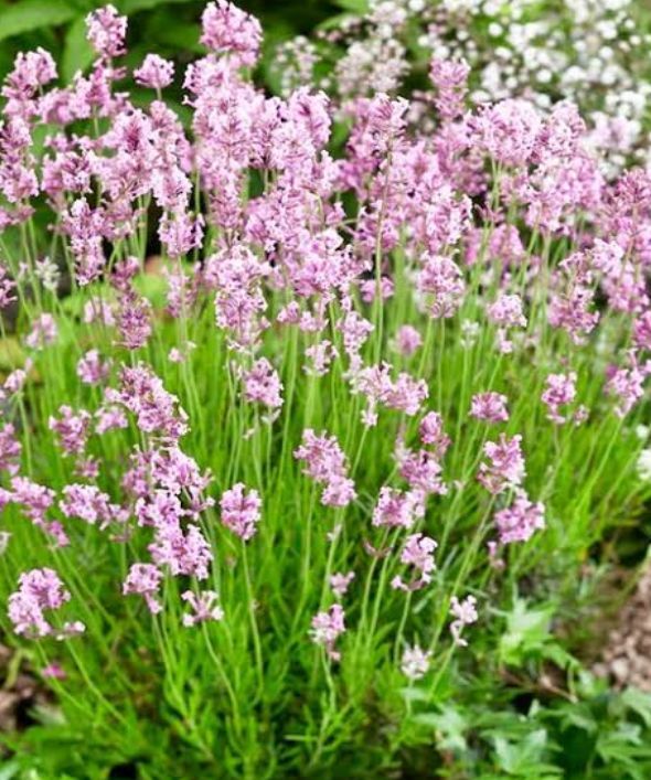 C'est une variété de lavande compacte à fleurs rose tendre,idéal dans une bordure ou une rocaille.